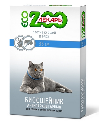 ЭКО ЗООЛЕКАРЬ биоошейник для защиты от блох, клещей и других эктопаразитов для кошек и мелких пород собак, 35см