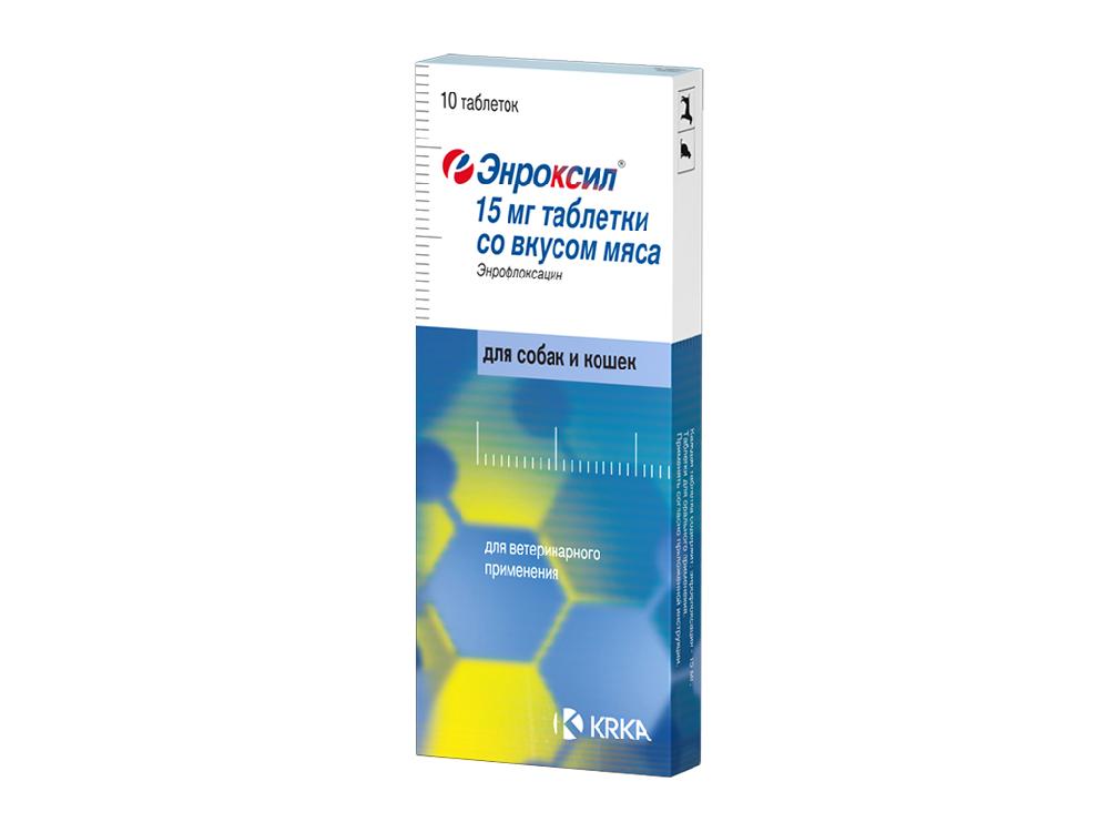 Энроксил KRKA 15 мг антибактериальный препарат для собак и кошек со вкусом мяса 10таб
