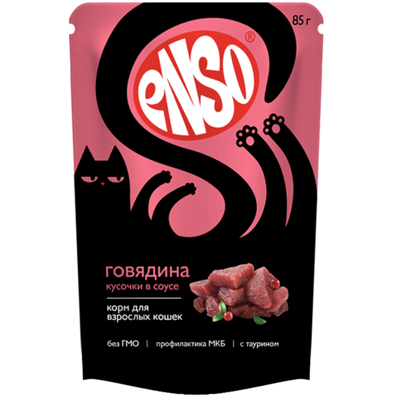ENSO Кусочки в соусе (Говядина) — влажный полнорационный корм для взрослых кошек.
