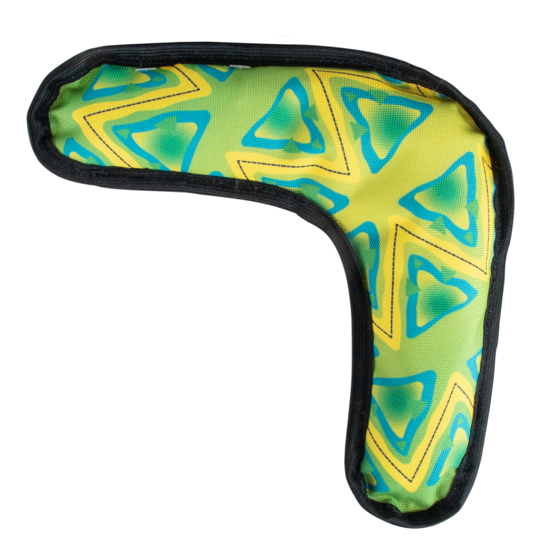 Игрушка Бумеранг не имеет вышитых элементов, аппликаций и внешней фурнитуры, что делает её абсолютно безопасной для здоровья собаки при жевании и грызении. Пищалка и шуршалка "плавают" внутри игрушки. Развивающая игрушка Бумеранг станет отличным вариантом для дрессировки щенков и взрослых собак.