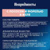 Состав: мясо и продукты переработки мяса (в том числе лосось 4% форель 4%), экстракт растительного белка, рыба и продукты переработки рыбы, минеральные вещества, различные сахара, красители, аминокислоты, загустители, витамины.