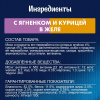 Состав: мясо и продукты переработки мяса (из которых ягненок 4%, курица 4%), экстракт растительного белка, рыба и продукты переработки рыбы, минеральные вещества, красители, различные сахара, витамины.