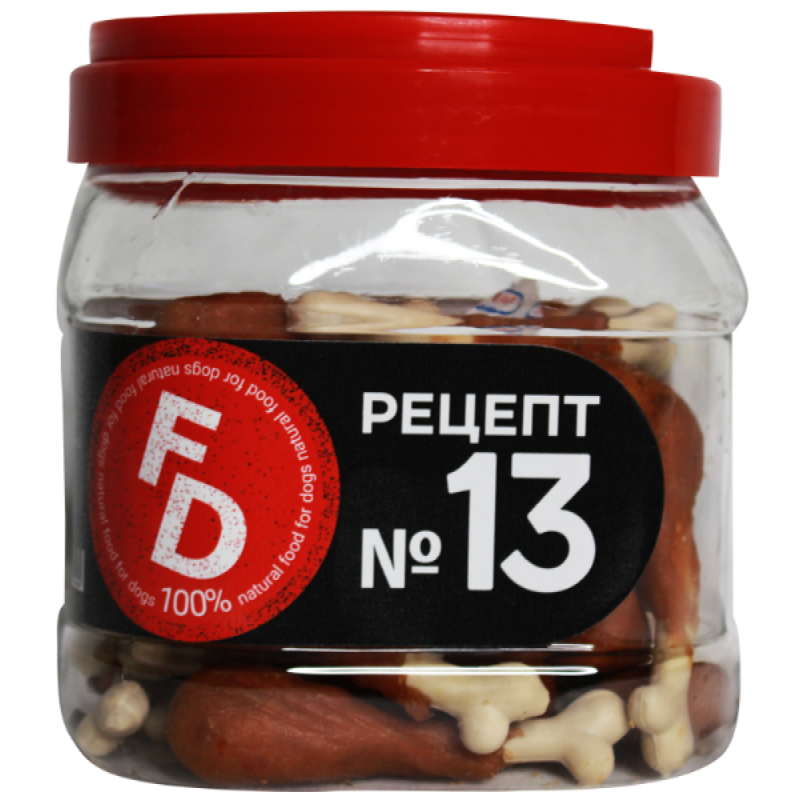 Рецептуры For Dogs – это разнообразие вкусов, 100% натуральные ингредиенты, удобный размер и форма. Рецепт №13 разработан с учетом полноценного рациона собак, содержит необходимые для настроения и энергии любимого друга витамины и питательные вещества.