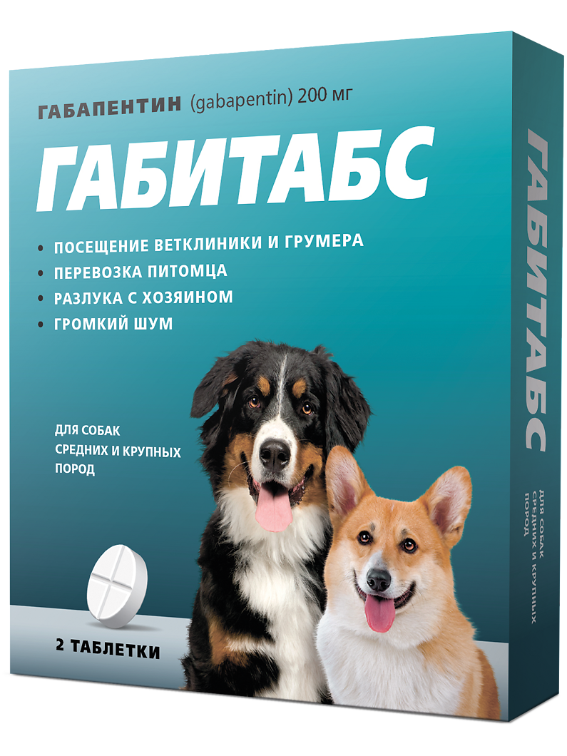 Габитабс таблетки успокоительные для собак средних и крупных пород, 2табл.,200мг