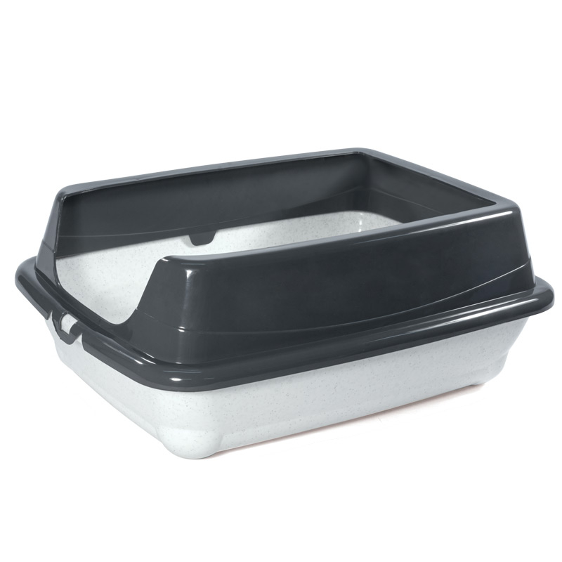 Съемный борт-рамка удобен для закрепления пластикового пакета, максимально упрощает уборку и предотвращает разбрасывание наполнителя при закапывании. Туалет изготовлен из высококачественного пластика и легко чистится под струей воды при помощи моющих бытовых средств.