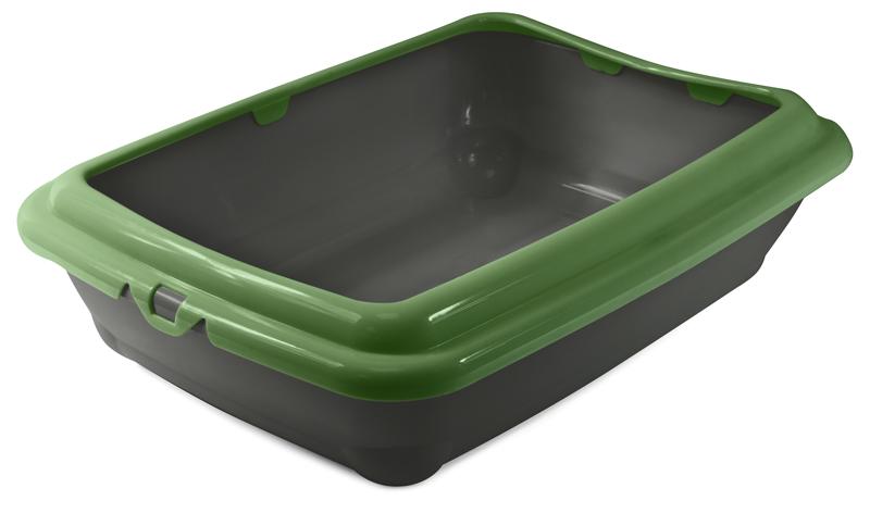 Съемный борт-рамка удобен для закрепления пластикового пакета, максимально упрощает уборку и предотвращает разбрасывание наполнителя при закапывании. Туалет изготовлен из высококачественного пластика и легко чистится под струей воды при помощи моющих бытовых средств.