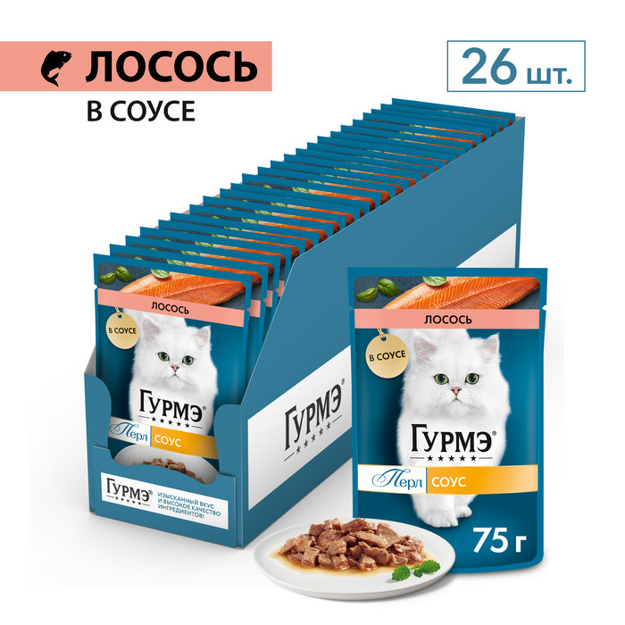 Гурме Перл Нежное филе Корм консервированный для взрослых кошек (лосось в соусе), 75г