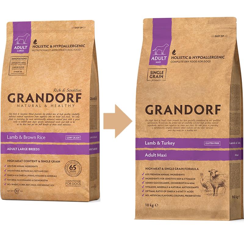Grandorf Adult Maxi (ягненок, индейка) - гипоаллергенный корм для собак крупных пород с одним злаком. Идеально подходит питомцам с чувствительным пищеварением или склонным к аллергии.