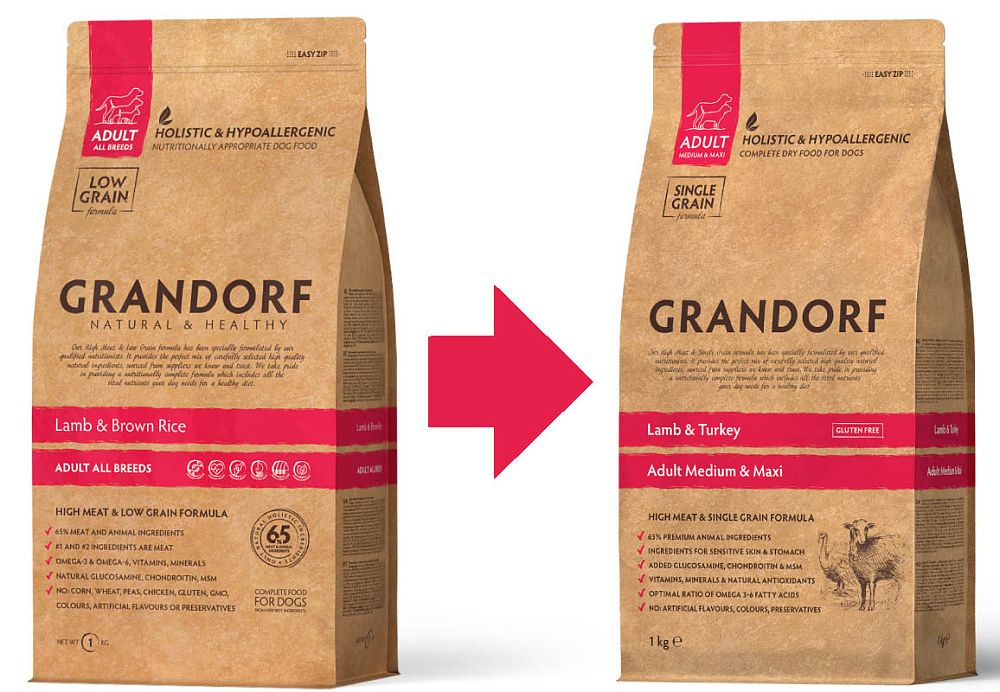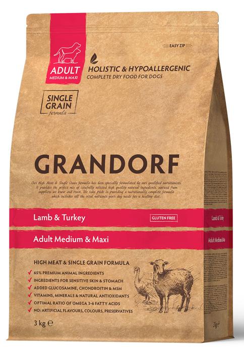 Grandorf Adult Medium & Maxi (ягненок, индейка) - гипоаллергенный корм для собак средних и крупных пород с одним злаком.