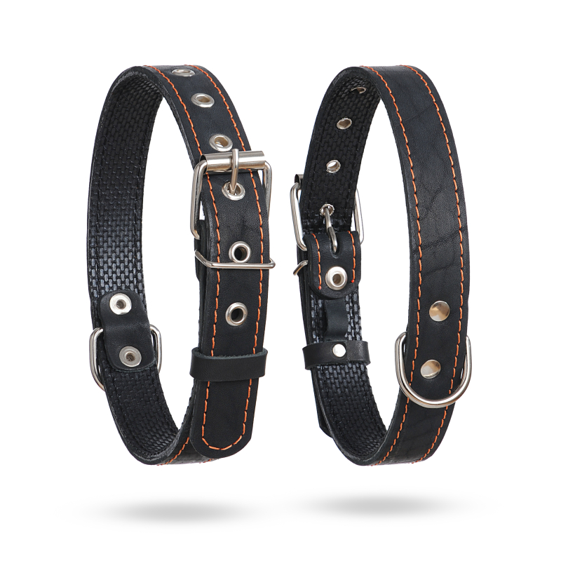 Humpo Ошейник кожаный для собак, подшитый, кольцо посредине (ширина 3,5см, обхват 50-65см)