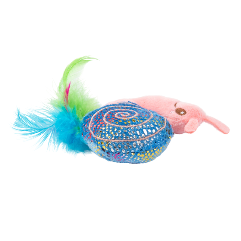 Игрушка Mr.Kranch для кошек Улитка плюшевая с кошачьей мятой и перышками розовая 18см