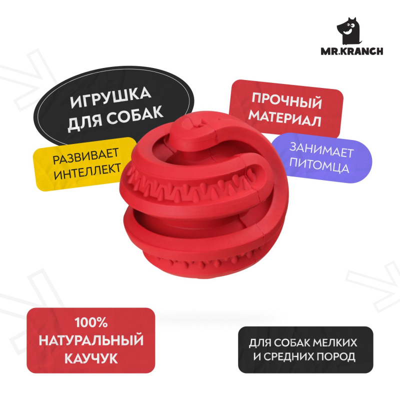 "Ароматизированная игрушка Mr.Kranch изготовлена из натурального каучука. Уникальная технология инкапсуляции аромата абсолютно безопасна для питомца.