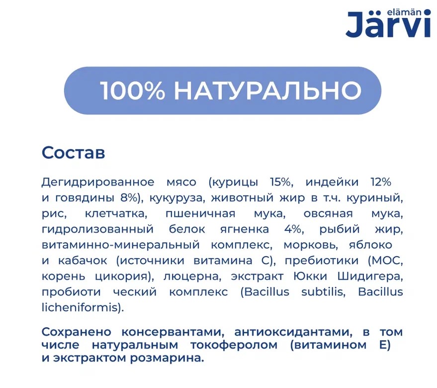 Сухой корм Jarvi для собак – это холистический, полнорационный корм для сбалансированного питания. Он соответствует высоким стандартам финского качества, разработан нутрициологами и одобрен ветеринарами.