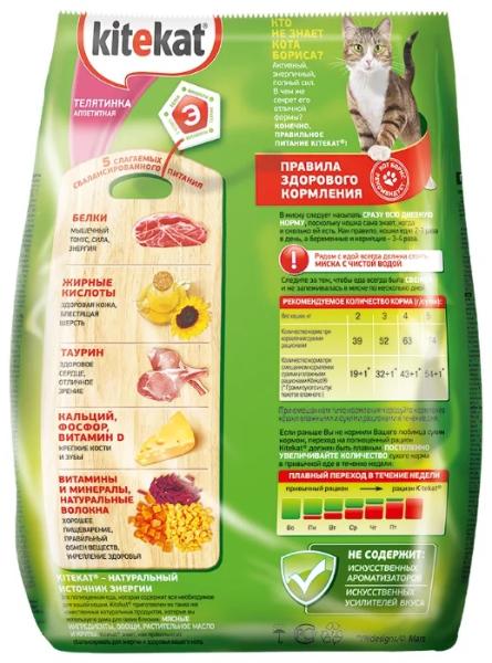 Kitekat для взрослых кошек (Телятинка аппетитная) - это полноценная еда, которая содержит все необходимое для вашей кошки. Kitekat приготовлен из таких же качественных продуктов, которые вы используете дома для своих близких: мясные ингредиенты, овощи, растительное масло и крупы.