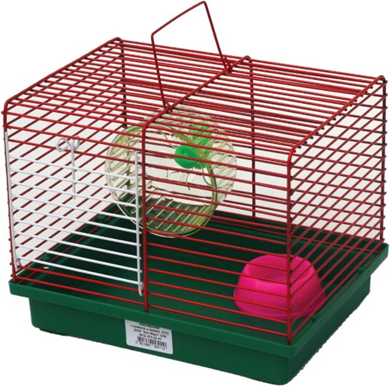 Клетка для содержания мелких грызунов: хомяка или мыши. Клеточка оснащена пластиковым колесом и миской. Пластиковый поддон легко моется. Для удобства переноски клетка имеет ручку. ВНИМАНИЕ: Цвет представлен в ассортименте. При заказе нет возможности выбора цветового исполнения – отгружается в произвольном порядке!