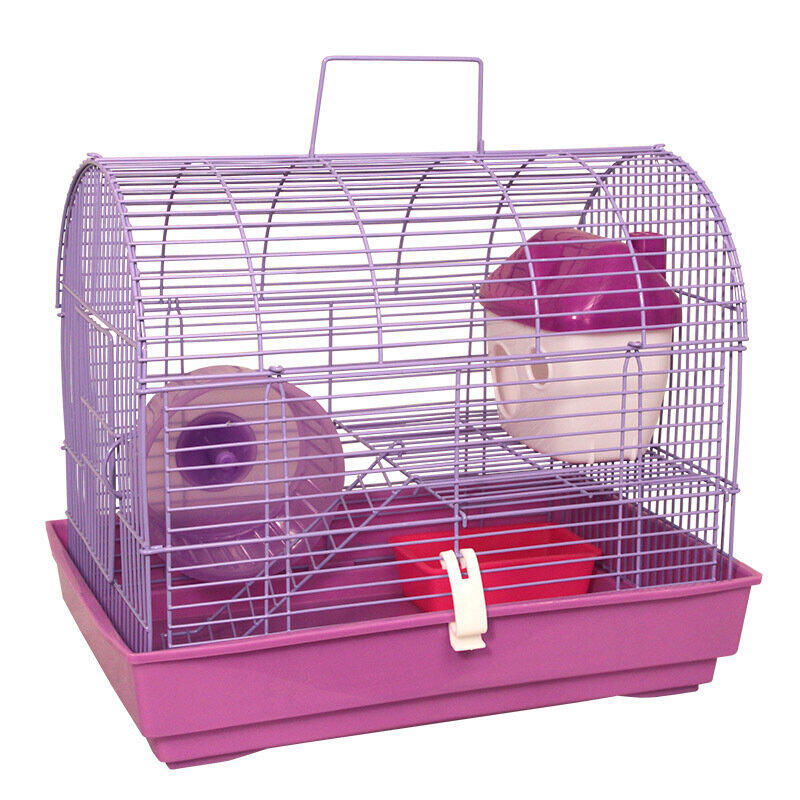 Двухэтажная клетка с вертикальными прутьями подходит для мелких домашних животных вроде крыс, мышей и хомяков. В комплектацию изделия также входят: пластиковая миска, уютный домик и беговое колесо. Кроме того, клетка оборудована удобной ручкой на крыше, облегчающей процесс переноски изделия.