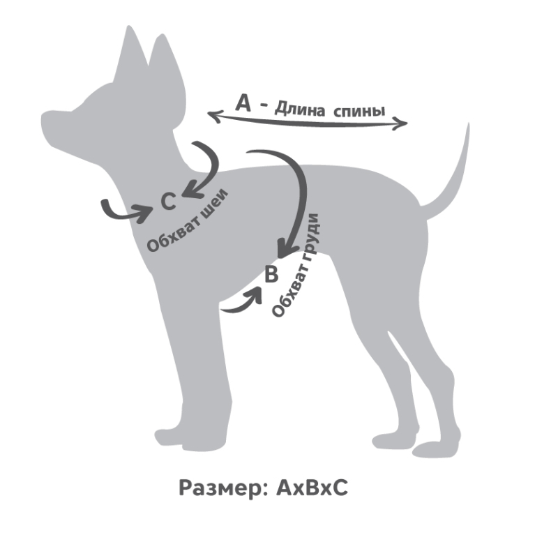 - XS (длина спины: 400 мм; обхват груди: 500 мм; обхват шеи: 360 мм);