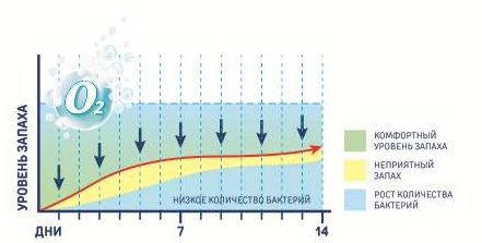 Капсулированные гранулы кислородного агента накапливаются на дне лотка, при контакте с жидкостью высвобождают большое количество активного кислорода, обладающего сильнейшим бактерицидным действием. Кислород "нейтрализует" аммиак, сероводород, тиолы и прочие компоненты кошачьей мочи, ответственные за образование неприятного запаха.