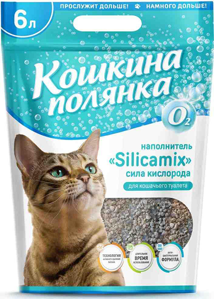 Кошкина Полянка "Silicamix Сила кислорода" - впитывающий наполнитель с силикагелем и активным кислородом.