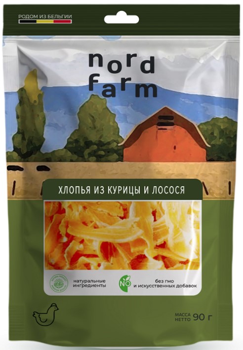 Лакомства для кошек Хлопья из курицы и лосося NORD FARM 90г