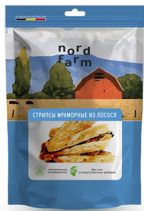 Лакомства для собак Стрипсы мраморные из лосося NORD FARM 90г