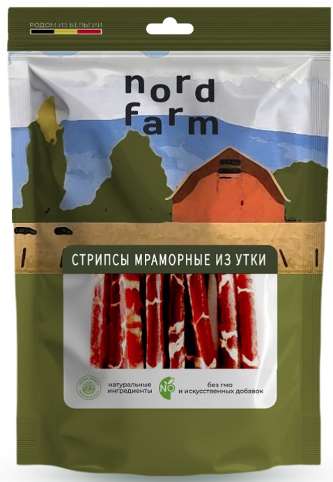Лакомства для собак Стрипсы мраморные из утки NORD FARM 90г