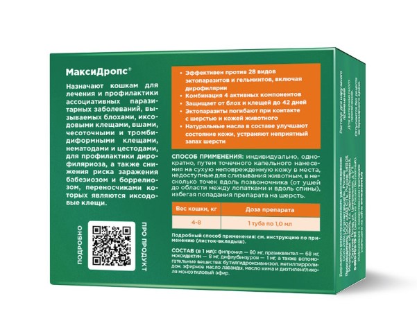 Комплексный препарат в виде капель на холку от клещей, гельминтов и блох для собак и кошек. ИННОВАЦИОННОЕ 5D ДЕЙСТВИЕ ПРЕПАРАТА: ДЛИТЕЛЬНАЯ ЗАЩИТА от блох и клещей до 42 дней. ОТ 37 ВИДОВ внешних и внутренних паразитов. НАДЕЖНАЯ ПРОФИЛАКТИКА дирофиляриоза. СНИМАЕТ ЗУД и раздражение кожи. НЕЙТРАЛИЗУЕТ ЗАПАХ шерсти.