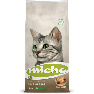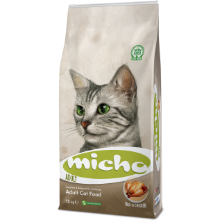 Micho Корм сухой для взрослых кошек всех пород со вкусом курицы. Micho Adult Cat - корм был разработан специалистами по питанию домашних животных с применением технологии экструдирования для повышения качества продукции.