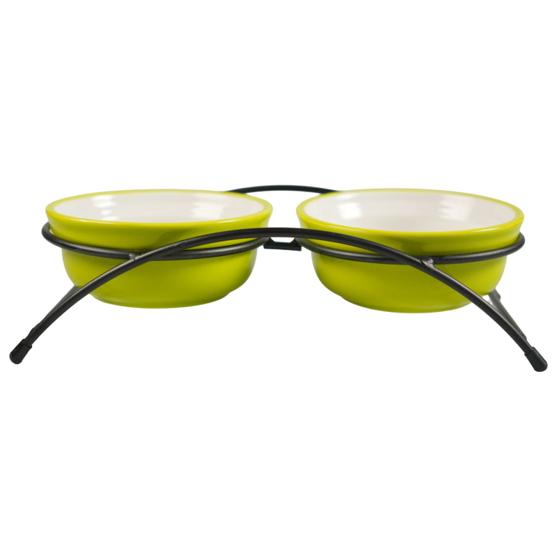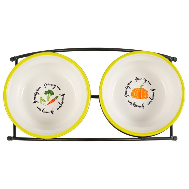 Керамическая миски Mr.Kranch двойные на подставке – это стильное и элегантное дополнение к любому интерьеру. Изготовлена из высококачественной керамики, которая не только красива, но и практична в использовании. Материал миски гарантируют ее долговечность и сохранность эстетического вида. Керамика не выцветает и не теряет своих свойств. Можно использовать для корма или лакомств. Можно мыть в посудомоечной машине. Объем миски: 2х290 мл.