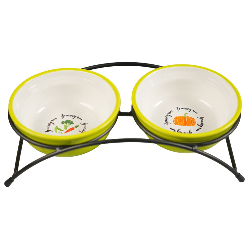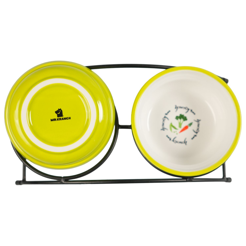 Миски Mr.Kranch на подставке для собак и кошек двойные 2x290 мл летние овощи, салатовые