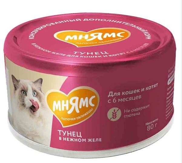 Мнямс Тунец в нежном желе для котят – консервированный дополнительный корм для котят с 2 до 12 месяцев. Содержит в составе натуральное мясо стейковой части тунца, которое хорошо усваиваются организмом и имеет высокую питательную ценность и вкусовую привлекательность.