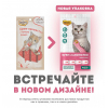 Состав: тунец Кацуо (25%), экстракт тунца, гидролизованный белок рыбы, олигосахариды, масло растительное, крахмал, соль, желирующий агент, аминокислоты, витамин Е, натуральный краситель, бета-каротин.