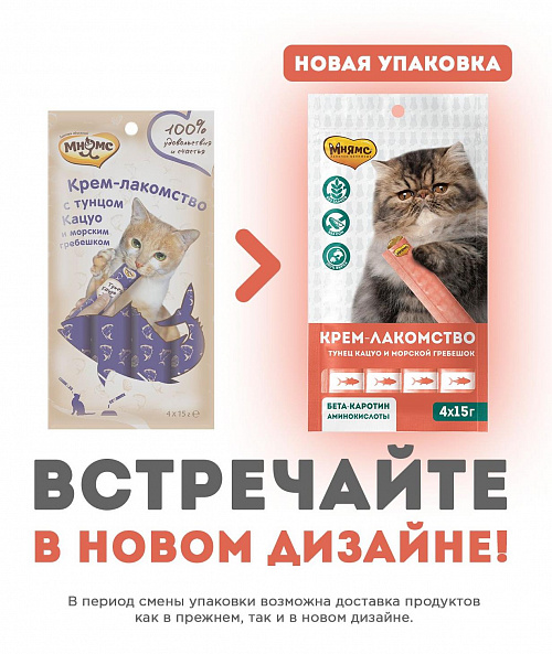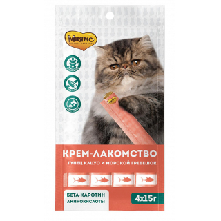 Мнямс Крем-лакомство для кошек (тунец Кацуо и морским гребешком), 15г