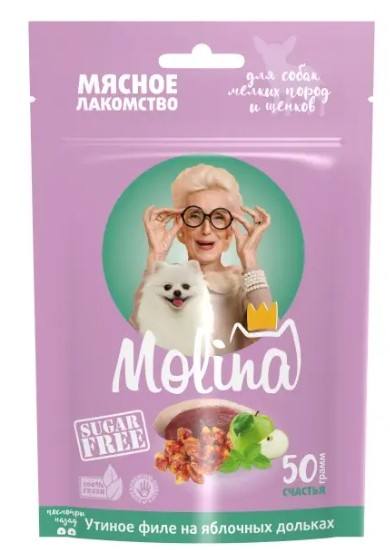 Molina Лакомство для собак мелких пород и щенков "Утиное филе на яблочных дольках", 50г