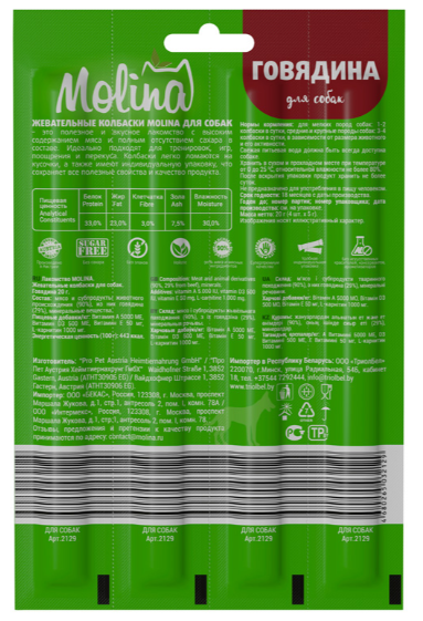 Molina Жевательные колбаски д/собак из говядины, 29 г