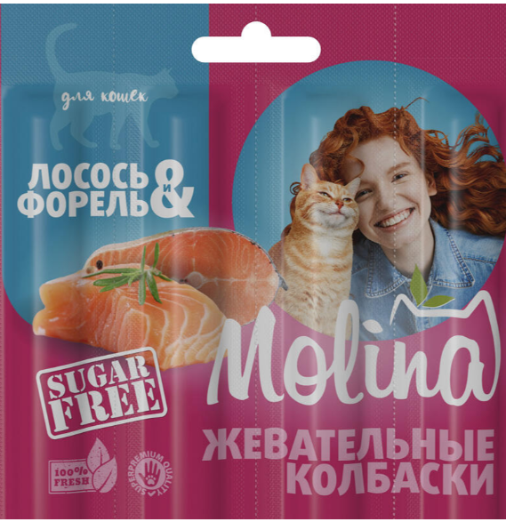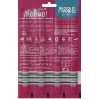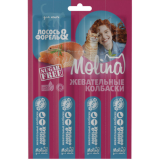Molina Жевательные колбаски для кошек из лосося и форели, 20 гр