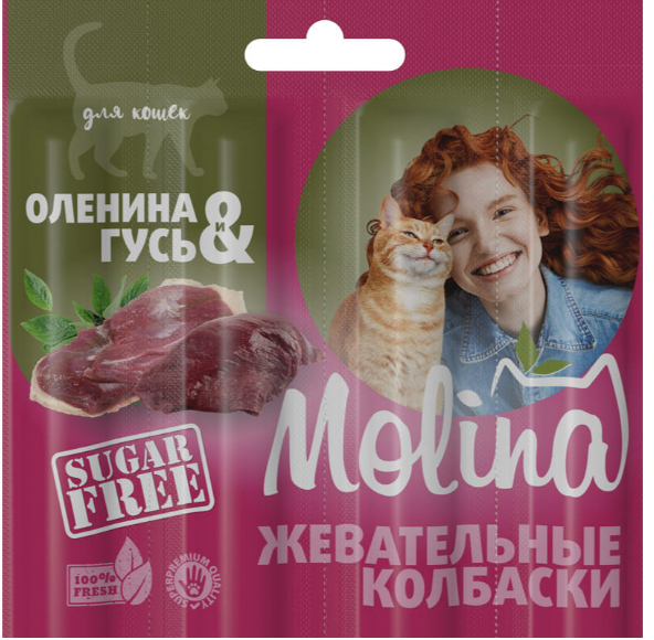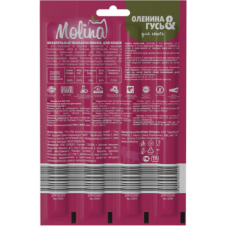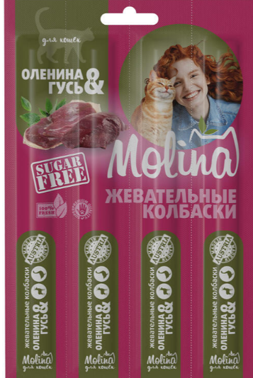 Molina Жевательные колбаски для кошек из оленины и гуся, 20 гр