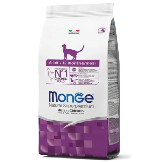 Monge Cat Adult (Курица) — это сбалансированный корм для взрослых кошек от 1 года до 10 лет. В состав включены незаменимые антиоксиданты, укрепляющие иммунитет.