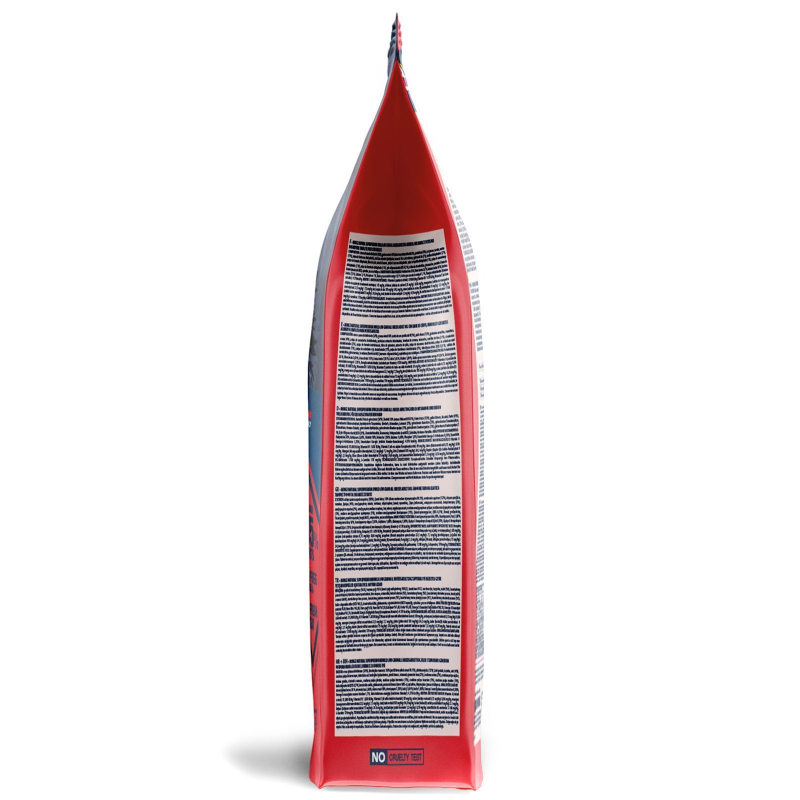 Ингредиенты: сушеное мясо оленя (38%), животный жир 16% (куриное масло очищенное на 99,5%), свежее куриное мясо (12%), желтый горошек, тапиока, овес (4%), сушеный свекольный жом, гидролизованные животные белки, пивовары дрожжи, минеральные вещества, льняное семя (2%), сушеная морковь (2%), сушеная мякоть томатов, гороховая клетчатка, сушеная мякоть ананаса, сушеная мякоть яблока, сушеная мякоть черники 1% (эквивалент 8,6% свежей черники), сушеная мякоть клюквы 1 % (эквивалент 8,6% свежей клюквы), сушеная мякоть малины 1% (эквивалент 8,6% свежей малины), ксилоолигосахариды (XOS 0,3%), хондроитин сульфат, глюкозамин, дрожжевые продукты (источник MOS), спирулина, юкка шидигера .