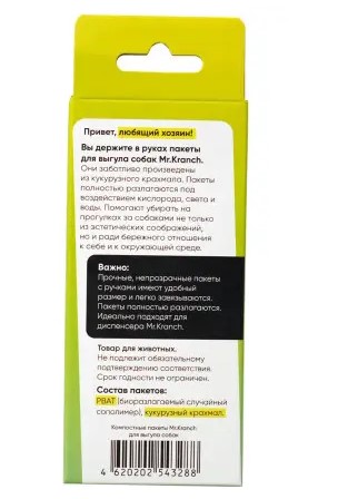 Mr.Kranch Компостные пакеты для выгула собак (4 рул по 15 пакетов)(22x33 см)