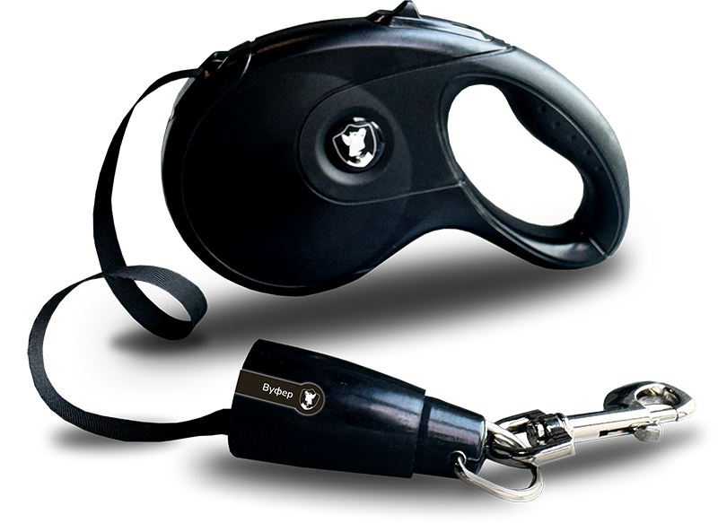 Поводок -рулетка с запатентованным механизмом спасения MyWoof. Вуфер- это механизм спасения, разработанный для предотващения несчастных случаев, связанных с лифтами, экскалаторами, и общественным транспортом. Размер M, до 20 кг, 5м