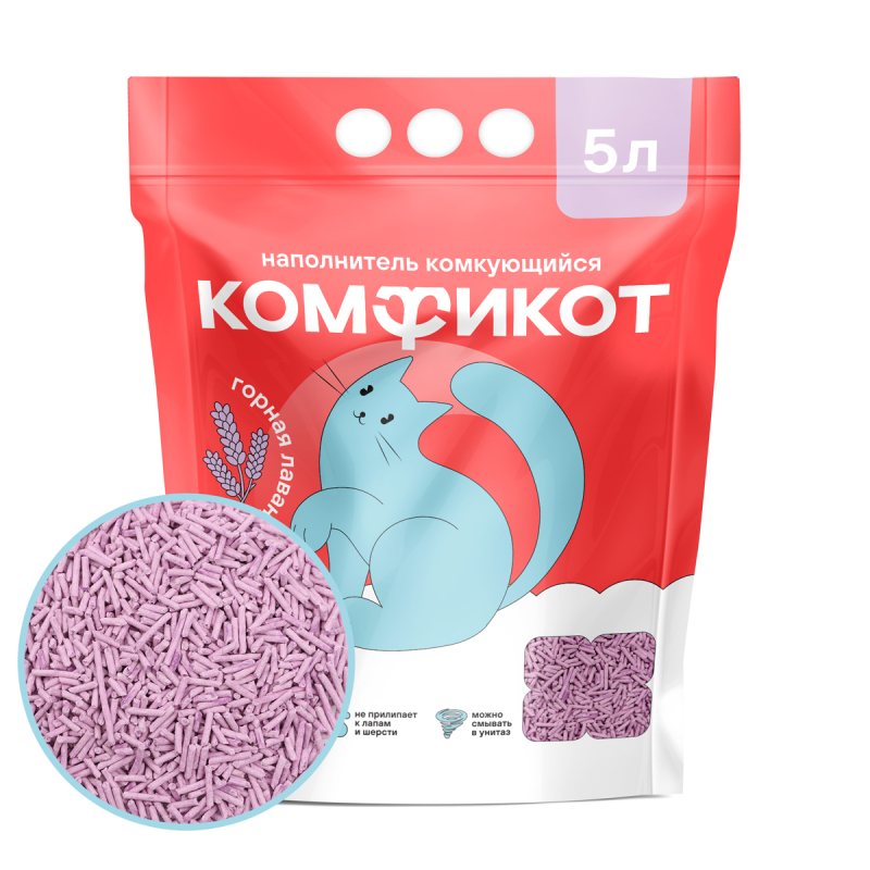 Наполнитель Комфикот комкующийся тофу 5л (2,3кг) Лаванда