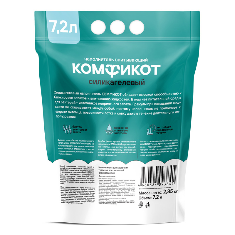 Наполнитель Комфикот силикагелевый впитывающий 7,2л