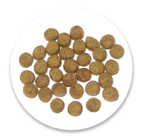 Состав: мясо птицы 39% (сушеное и мелкого помола), рис, кукуруза, кукурузный глютен, птичий жир, жом сахарной свеклы, целлюлоза, пивные дрожжи, рыбная мука, динамически микронизированный клиноптилолит (1%), яичный порошок, экстракт цикория, маннаноолигосахариды (MOS), экстракт юкки, мука календулы.