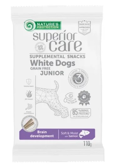 Nature's Protection Superior Care White Dogs Grain Free Brain development лакомство для собак (Лосось), 110гр
