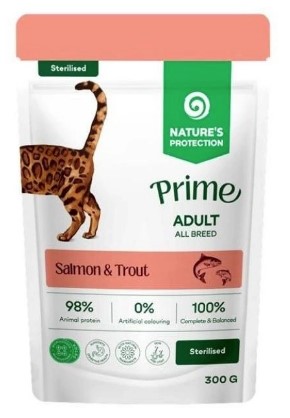 Natures Protection Prime Sterilised для кошек стерилизованных, кусочки в соусе лосось/форель,300г