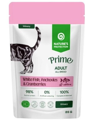 Диетический влажный корм Nature's Protection Prime для кошек, с белой рыбой, анчоусами и клюквой — ежедневный выбор для поддержания здоровья мочевыводящих путей. Легкоусвояемые белки, мягкая текстура и сбалансированный состав. Для взрослых кошек, склонных к нарушениям мочевыводящих путей. Если требуется питание, которое поддерживает здоровье мочевыделительную систему. Если кошка пьёт недостаточно воды. Если требуются легкоусвояемые белки (белая рыба, анчоусы). Если кошка привередлива и предпочитает филе в соусе.