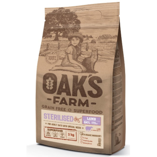 OAK'S FARM Grain Free Lamb Sterilised Adult Cat сухой корм для кошек взрослых стерилизованных, беззерновой, Ягненок ,2кг