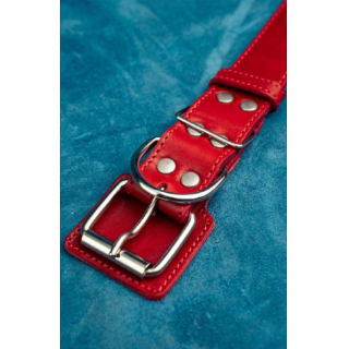 Ошейник из натуральной кожи, цвет красный с красной нитью 40см