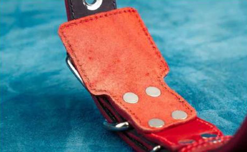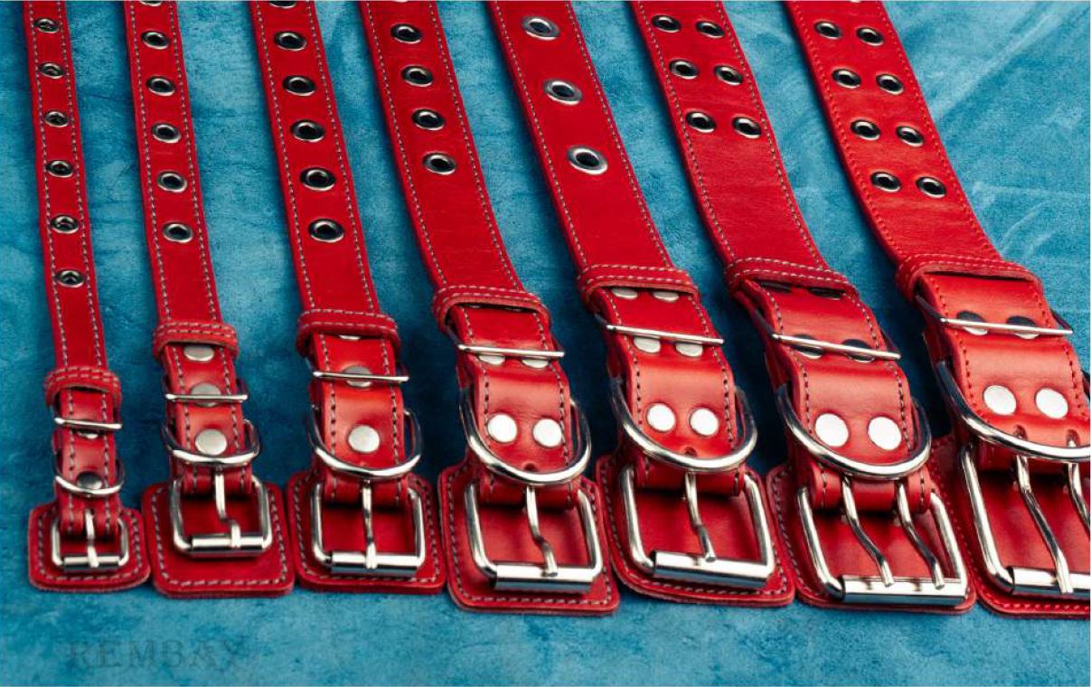 Ошейник из натуральной кожи, цвет красный с серой нитью 40см